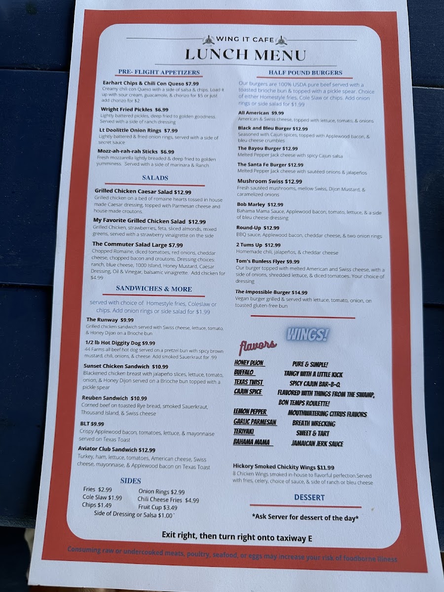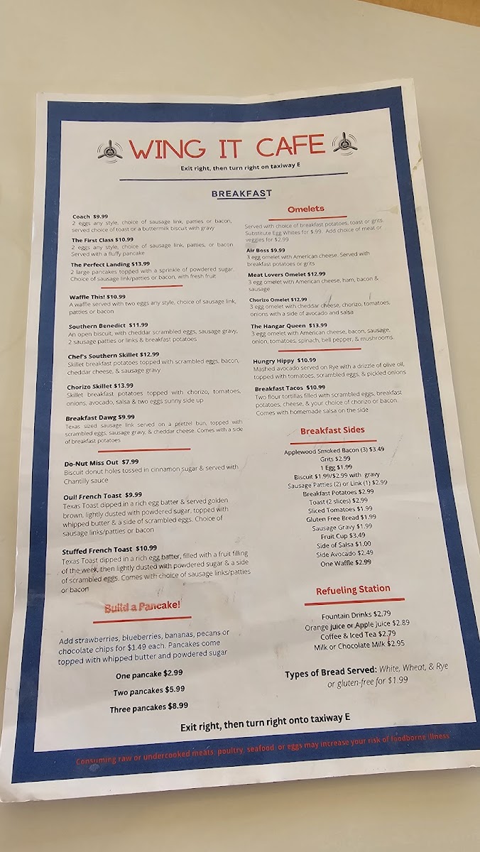 Not to be missed are the delightful sides, such as Chili Cheese Fries and Onion Rings, perfect for complementing your meal. The café's unique location allows guests to enjoy breathtaking views of planes taking off and landing, creating a vibrant atmosphere that delights both young and old. Customers rave about the friendly service and generous portions, making Wing It Cafe a must-visit whether you're dropping by for breakfast or lunch!